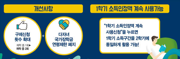 2월 3일부터 2차 신청이 시작됩니다. 중요한 것은 국가장학금 2차 신청부터 재학생의 2차 시기 신청 허용을 재학 중 2회까지 확대했다는 것입니다.