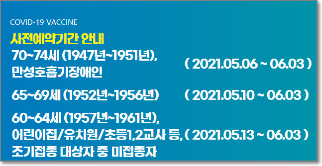코로나19 예방접종 사전 예약 기간입니다. 아래의 신청 대상인 분들은 해당 사이트에 접속하여 신청 바랍니다.