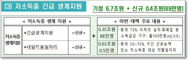 ▶저소득 취약계층 55만 가구(88만명)에게 긴급 생계자금이 지원됩니다.