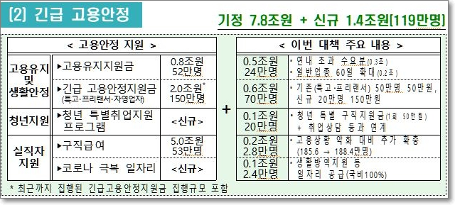 (1차 지원금을 받은 50만명은 심사 없이 추석 전에 50만원 추가 지원, 재확산 시기에 소득이 감소한 신규 20만명에게는 150만원을 3개월 동안 50만원씩 지급)