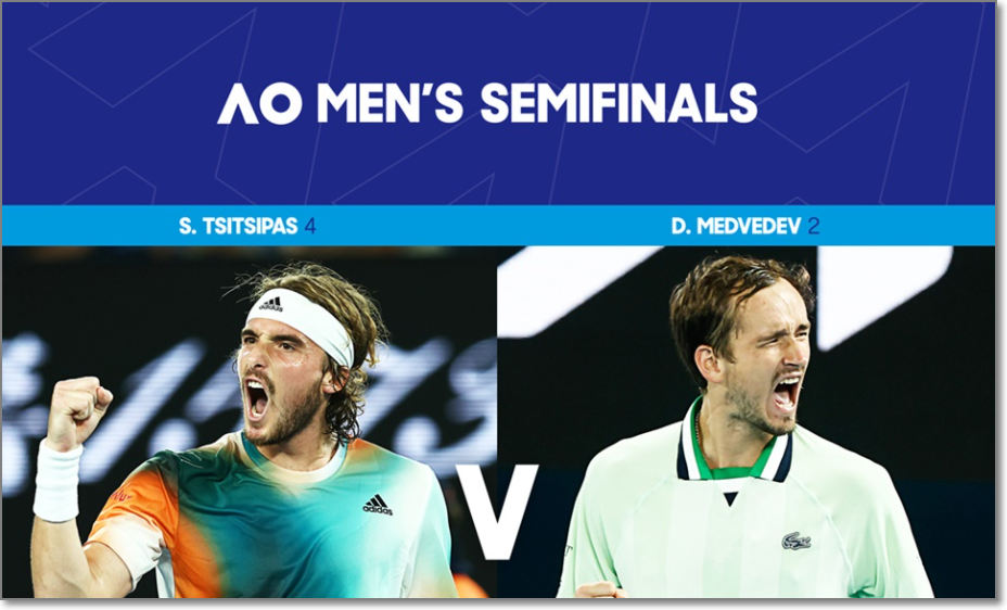 호주오픈 테니스 대회 남자 단식 4강 대진표가 완성되었습니다. 4강에서는 메드베데프와 치치파스가 맞붙습니다. 자세한 경기시간과 시청 방법 안내드리니 아래를 참고 바랍니다.