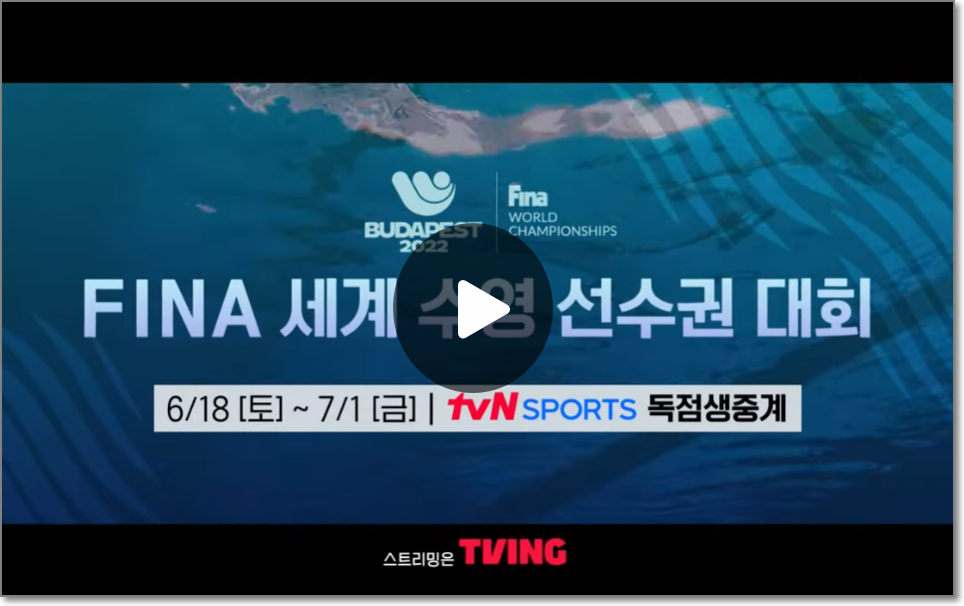이번 2022 세계수영선수권대회는 티비엔 스포츠 채널 및 티빙 등에서 시청 가능합니다. 좀 더 자세한 내용 및 무료 시청 방법을 아래에서 확인 바랍니다.