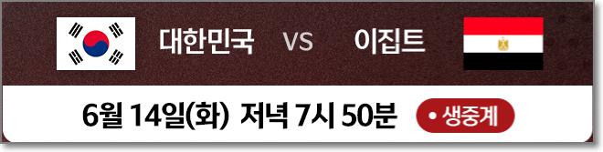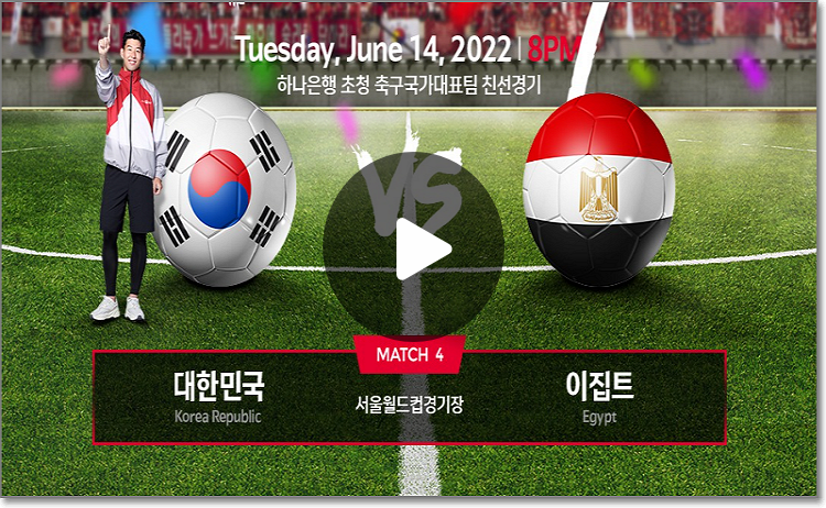 6월 14일 저녁 8시에는 대한민국 이집트의 친선 경기가 있습니다. 서울 상암 월드컵 경기장에서 열리며 자세한 시청 방법은 아래를 참고하세요.