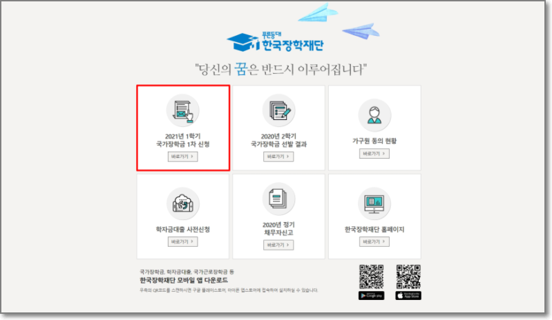 좀 더 자세한 사항과 신청방법은 한국장학재단 홈페이지에 상세하게 나와 있으며 모바일 앱을 통해서도 간편하게 신청하실 수 있으니 해당 사이트와 어플을 활용하시기 바랍니다.