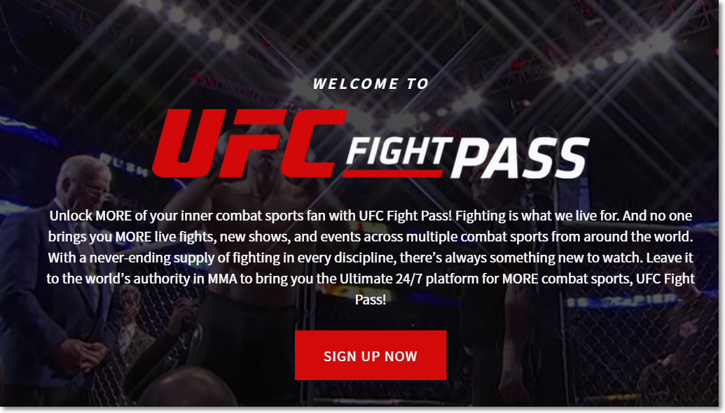 WELCOME TO Unlock MORE of your inner combat sports fan with UFC Fight Pass! Fighting is what we live for. And no one brings you MORE live fights, new shows, and events across multiple combat sports from around the world. With a never-ending supply of fight